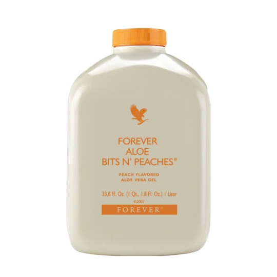 Nước uống dinh dưỡng gen lô hội hương đào Forever Aloe Bits n’ Peaches mang đến một hương vị khác cho bạn thưởng thức, trong đó có chất gel lô hội ổn định và nước ép nguyên chất tự nhiên từ quả đào.
